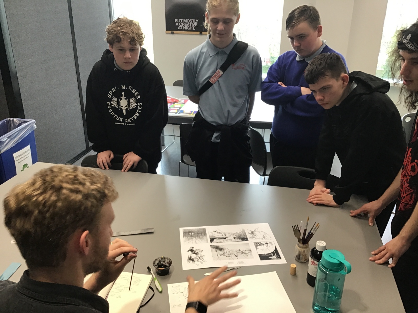 A tutor also demonstrated some mark-making techniques inspired by various artists.