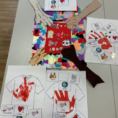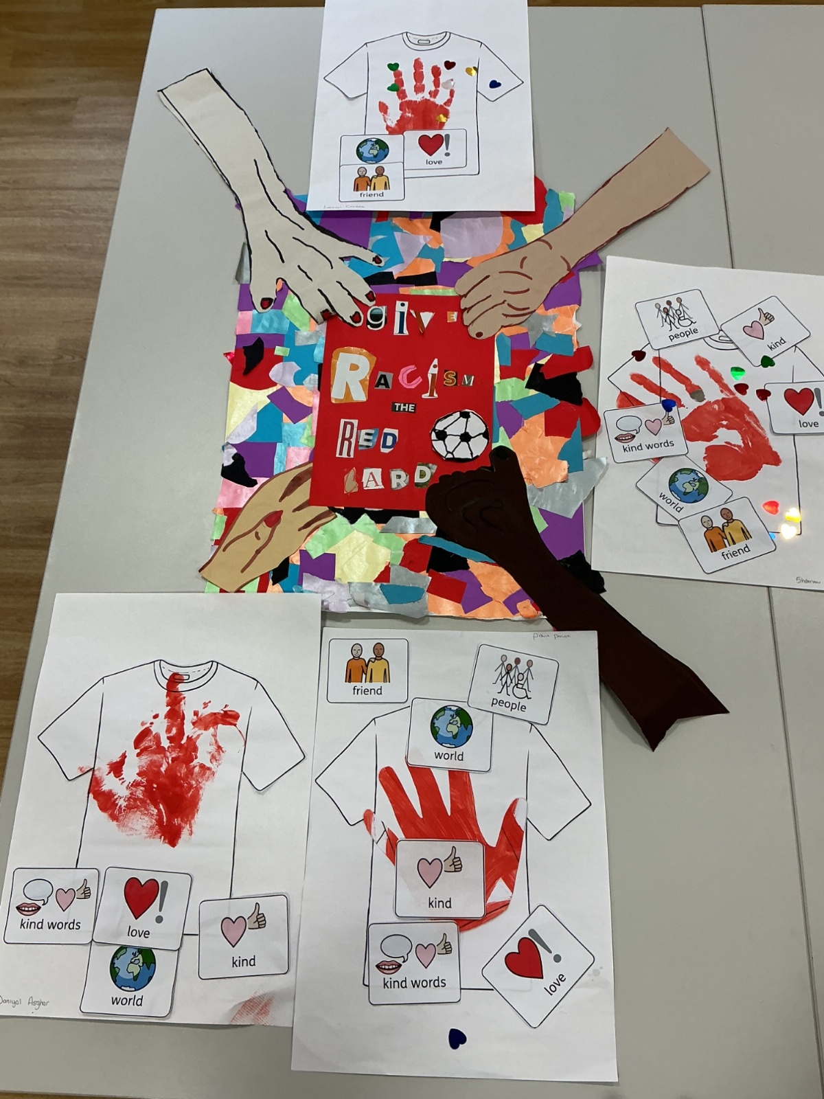 Throughout the week, our students have been creating powerful posters to share their messages against racism. We've had thoughtful discussions about how we are all different, yet all equal.